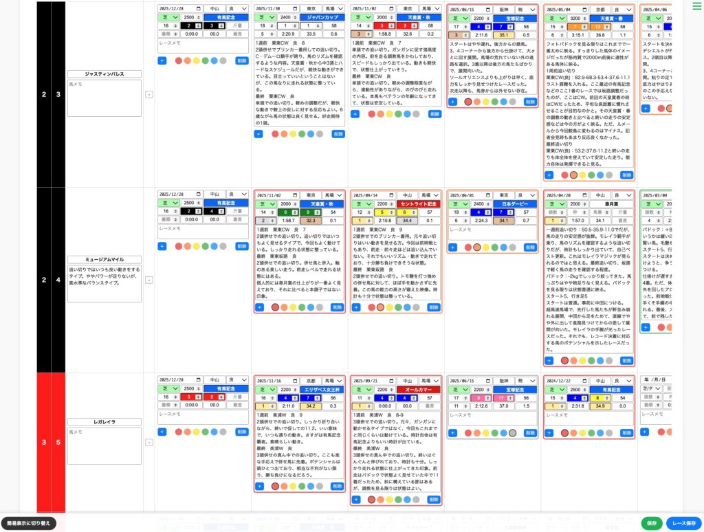 ✅ レース評価を色分けして管理可能